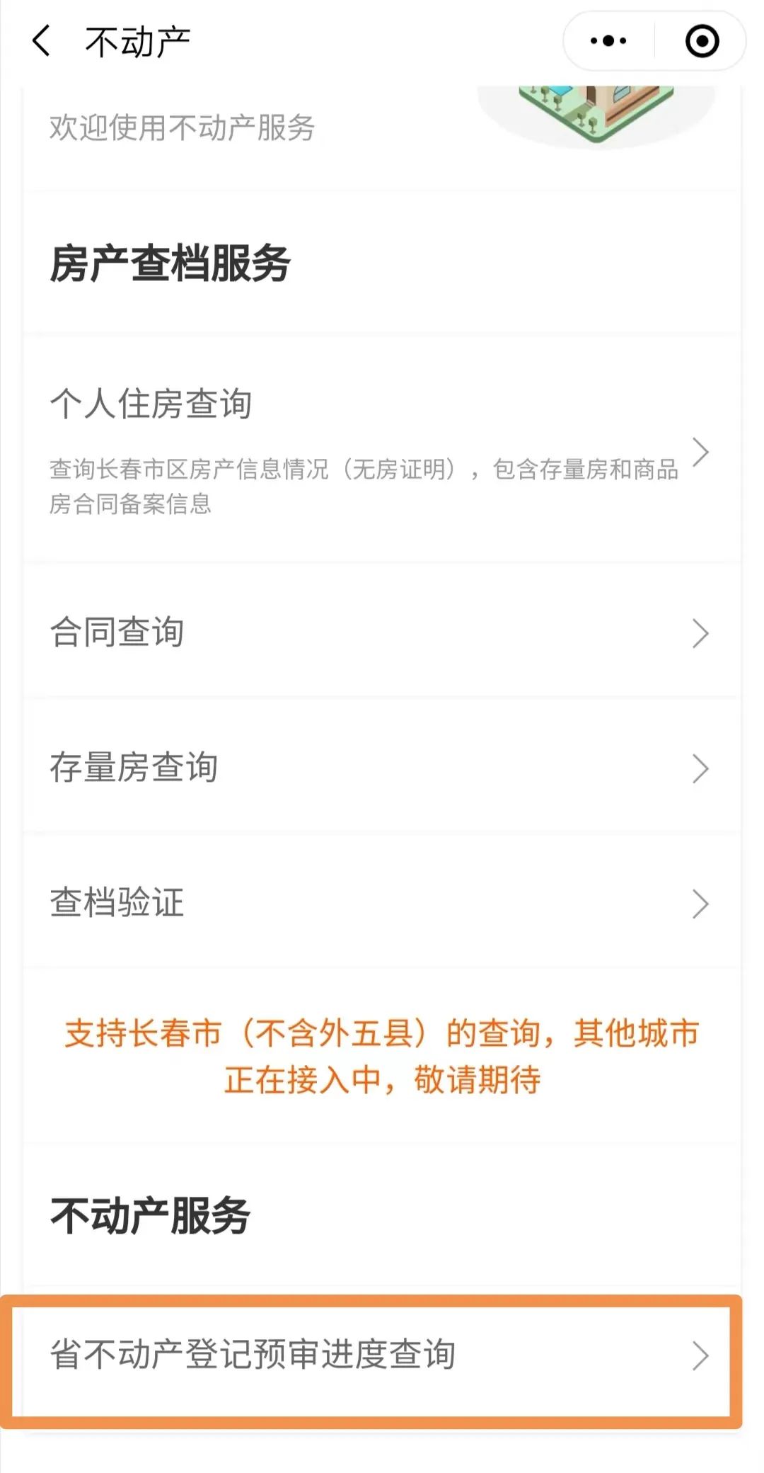 用戶(hù)登錄“吉事辦”移動(dòng)端(App、小程序),在首頁(yè)“專(zhuān)項(xiàng)服務(wù)”選擇“不動(dòng)產(chǎn)”,在“不動(dòng)產(chǎn)服務(wù)”中點(diǎn)擊“省不動(dòng)產(chǎn)登記預(yù)審進(jìn)度查詢(xún)”,輸入受理編號(hào)即可查詢(xún)辦理進(jìn)度。