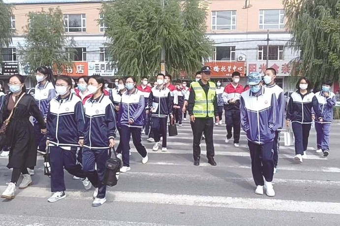 通知要求,要加強對校園周邊道路巡邏管控,落實上下學(xué)高峰時段“護(hù)學(xué)崗”勤務(wù),城區(qū)校園公安交(輔)警“護(hù)學(xué)崗”設(shè)置率要達(dá)到100%、農(nóng)村地區(qū)校園交通安全員上崗率要達(dá)到90%。加強校園交通安全技防建設(shè),實現(xiàn)校園出入口道路視頻全覆蓋,守護(hù)師生交通安全。